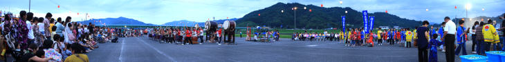 番匠川河川敷で午後7時から市民総踊り大会、午後8時から花火大会が行われます。