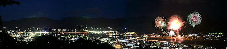 佐伯市花火大会 番匠の火祭りパノラマ風景とスライド写真