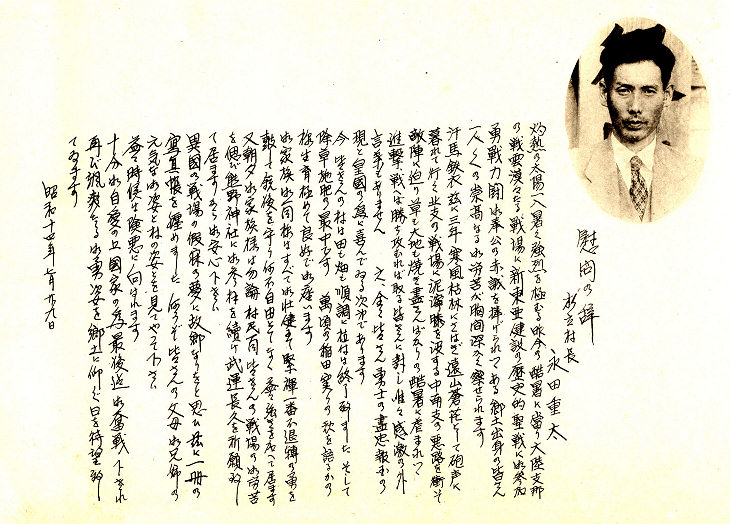 中国に渡った兵士に故郷の父母兄弟の写真帳を昭和14年の夏 当時の村長がこの