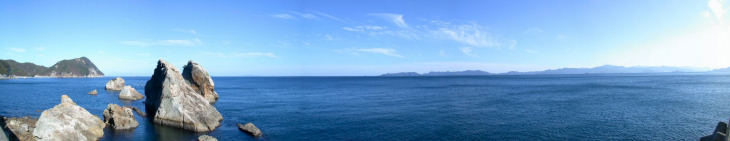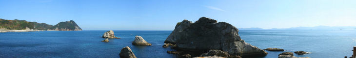 佐伯市上浦の海岸部と蒲戸崎からのパノラマ風景写真