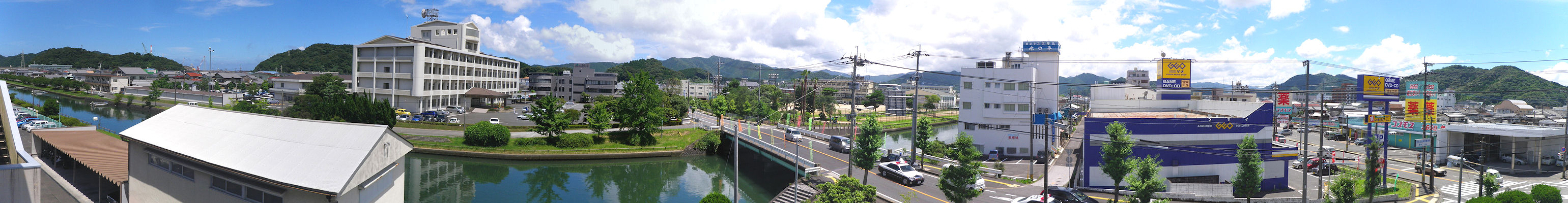 佐伯警察署3階から中川や大分県南部振興局を眺める