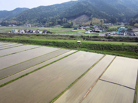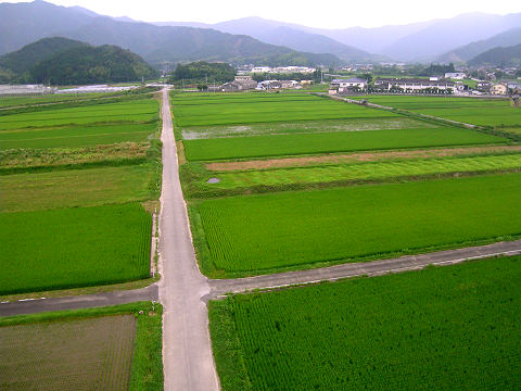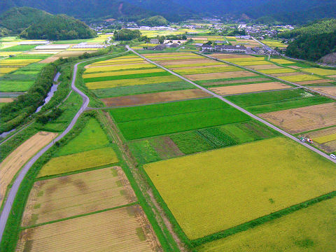 下の写真をクリックすると木立の水田を空撮したスライド写真が開きます