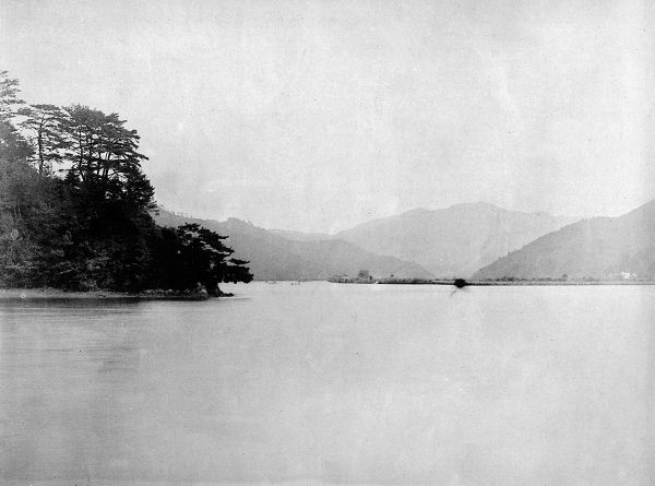明治時代の茶屋が鼻と木立川と元越山の風景