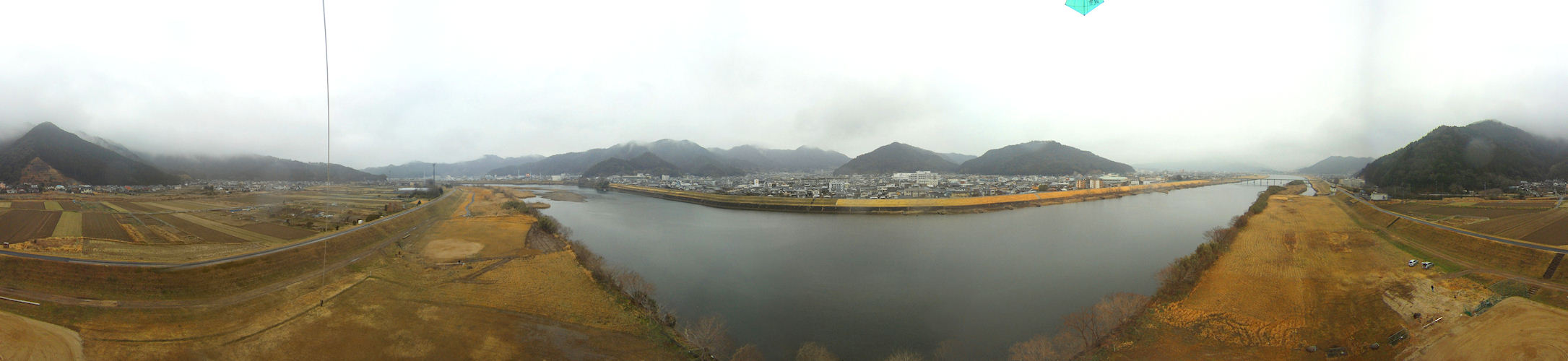 2012年3月4日撮影 曇りで霧雨の中凧を揚げGoPro HDで撮影した5枚の写真から合成したパノラマ写真です 毎年3月の第1日曜日は女島地区の方が毎年生まれた子供たちの名前を書いた凧 を揚げる大会と聞いていたのですが 天気が悪いのか凧揚げ大会はやっていませんでした。