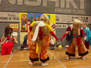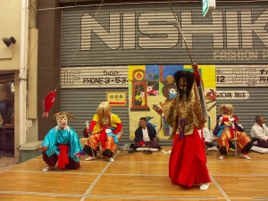 宇目商工会のご協力により 重岡岩戸神楽保存会による神楽がありました またユキ玩具店の跡に宇目の特産品を売るお店ができました。 どうぞご利用ください。 宇目の新米 もち米 饅頭 弁当 生しいたけ 炭 鹿肉 猪肉 スイトピー アルストロメリア 陶芸品 農産物いろいろあります。 ムービー1を見る ムービー2を見る 2005年12月4日