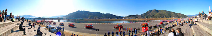 毎年佐伯市番匠川河川敷で行われる消防団出初式です。