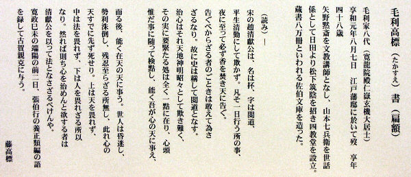 毛利家八代藩主 高標(たかすえ)候の書
