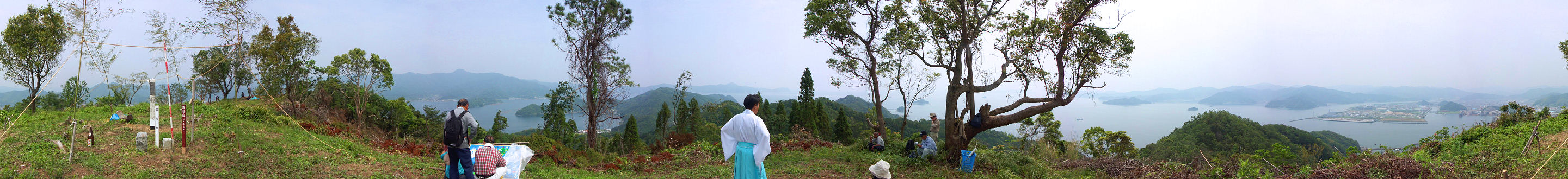 ここは大入島の一番高い遠見山頂上です 「大入島しまづくりの会」(高盛西郷代表)が 登山道の復元を進めていました 草を刈り 倒木を除き 頂上付近の眺めのじゃまな木を伐採し 大変な作業をしてようやく石間からのルートが完成 今日最初の登る会が開催されました