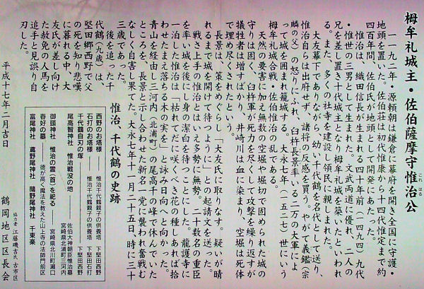 2009年3月 栂牟礼山(海抜224m)に登って見ました 携帯電話のカメラ機能で撮影 登山口にある案内板 栂牟礼城主の佐伯惟治について 原生椿園 頂上 頂上の石祠群 七九谷砦付近の展望所から 頂上にある明石秋室の歌