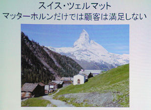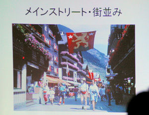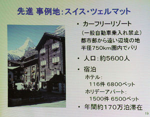 プロジェクターでたくさんの スイス・ツェルマットでの取り組み方などを紹介