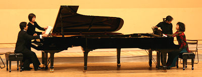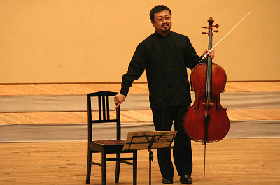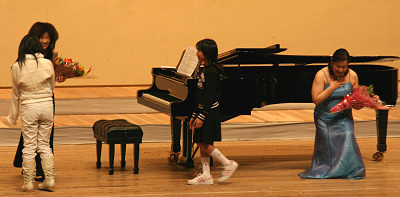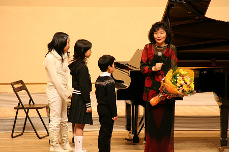 東京音楽大学カルテット チェロ奏者の河野文昭氏 川村文雄氏と伊藤京子氏のピアノ演奏 ピアノを勉強している子供達が伊藤京子さんに花束贈呈 植木千明氏の唄と佐藤リエ氏のピアノ