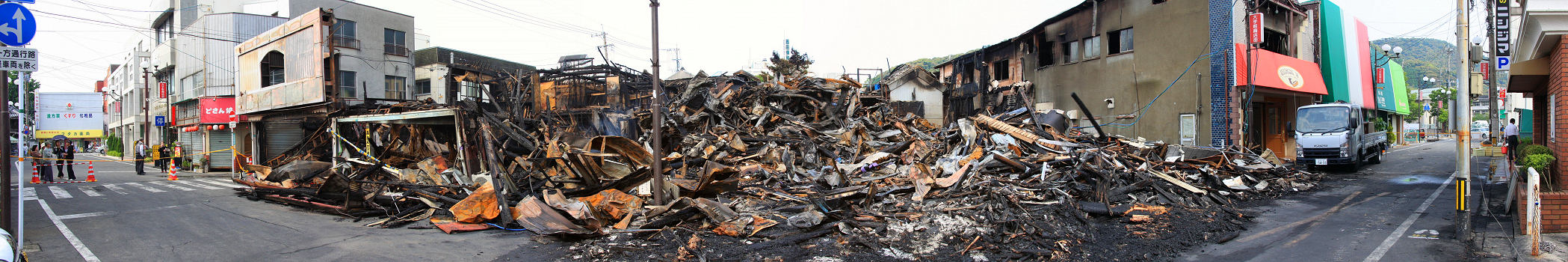 2008年5月23日午前9時半撮影 前日の22日午後大手前商店街で大きな火災がありました