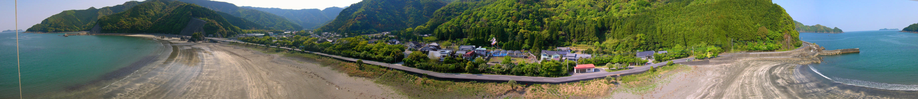 葛原海岸から凧を揚げ空中パノラマ写真