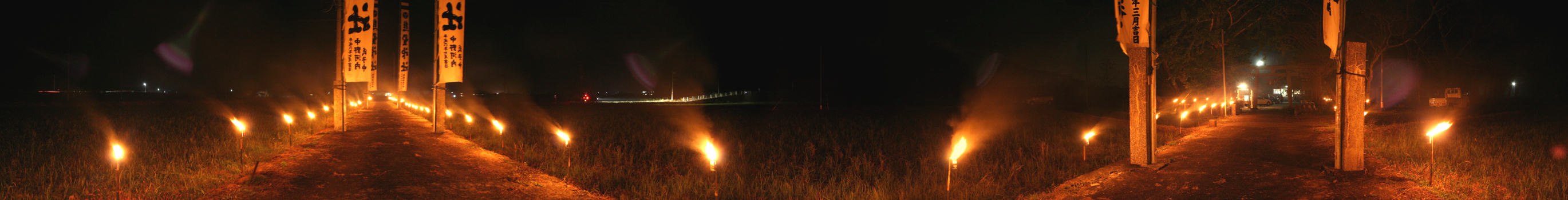 木立熊野神社秋の祭典 神社の参道の松明