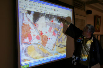 | 四教堂塾主催の郷バス写真展示 | 佐伯藩時代の地図に対しての質問に応える那木氏 | |