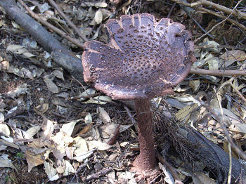 | 昔はマッタケもあったそうですが今はありません | 笠の直径20cmくらいで大きなキノコ | |