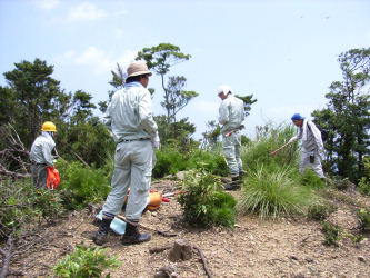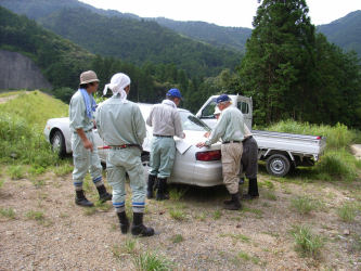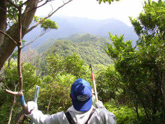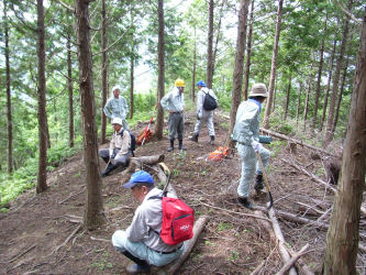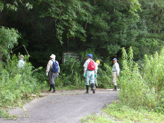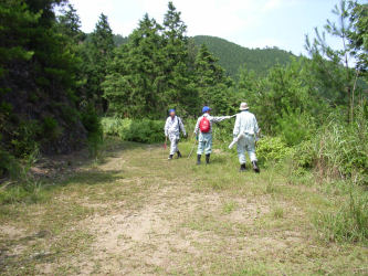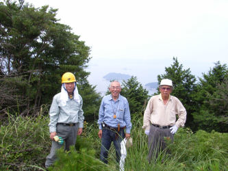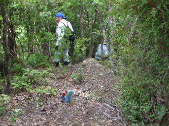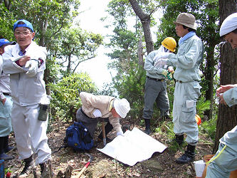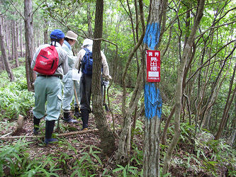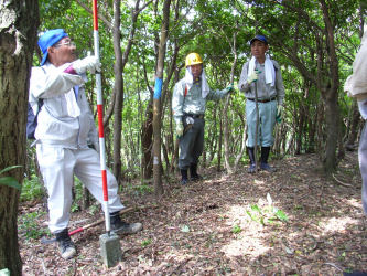 山林の一番外側の境界を歩く事になり市役所の担当者と測量会社の人と歩いてみました