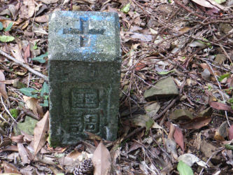 | 青い杭は林業公社の調査杭 | 三角点も要所要所にありました | |