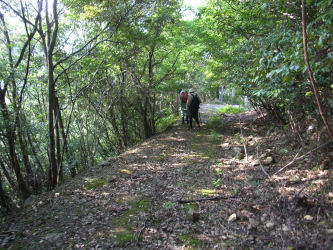 | 14 トンネルの無い昔ここに峠の茶屋があったそうです | 杉林を下っていきます | |