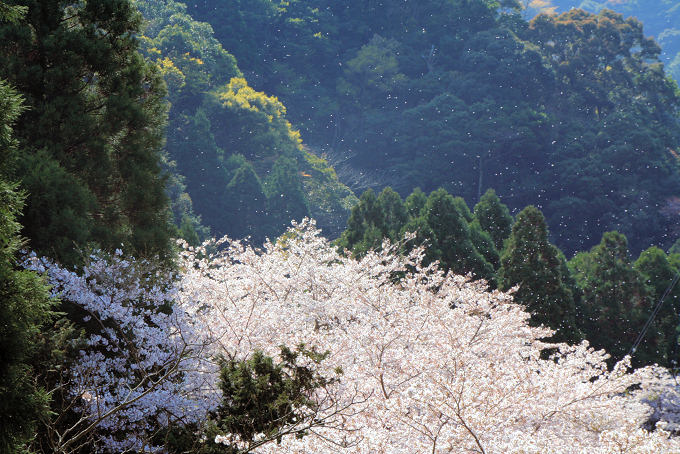風で花びらが舞っています