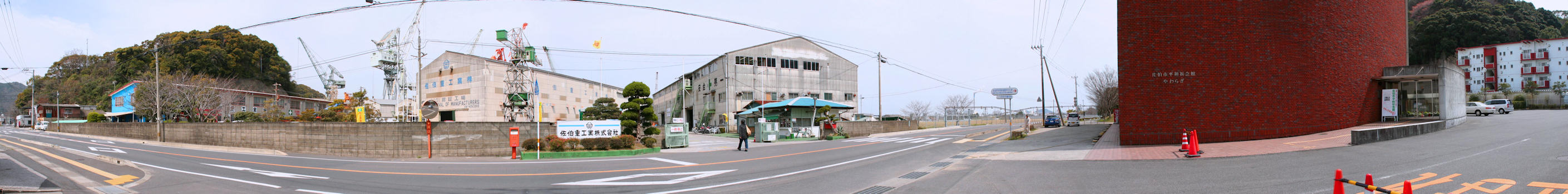 造船所佐伯重工業とその前の平和祈念館やわらぎ