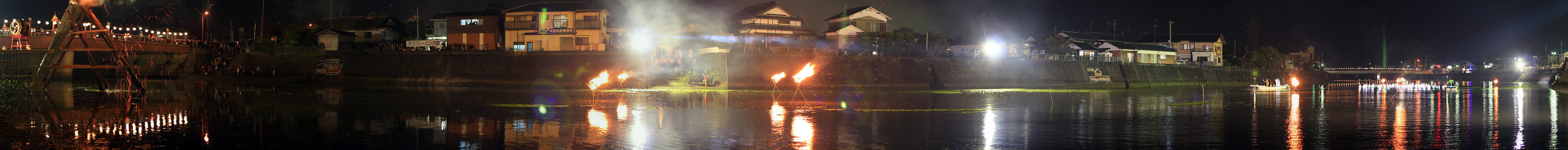 2008年11月14日 川の水位が上がり いよいよ町内を廻ってきた神輿が川を渡りはじめます。