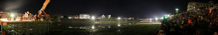 河川敷から360度の様子を撮影、今か今かとたいまつ点火の瞬間を待ちます