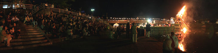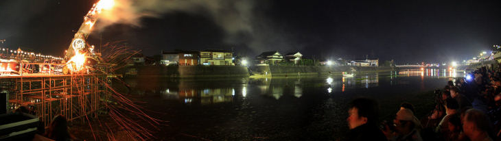 御玉橋から火矢を放ってこの大たいまつに点火します。