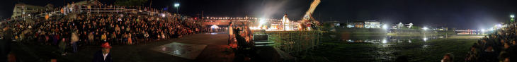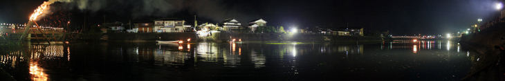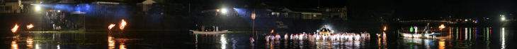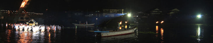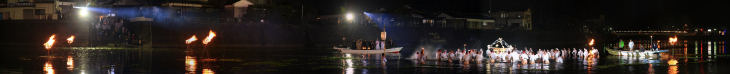 今度は下宮から若宮八幡神社へお上りする夜の勇壮な川渡し神事です。