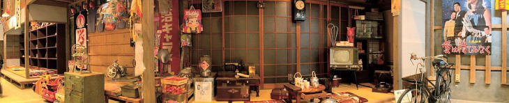 豊後高田市は、昭和30年代をテーマに、当時の店舗の外観を再現した商店街を町作り事業で 興し、昭和の町として売り出しています。 昭和のはじめに作られた大きな農業倉庫を改築し、昭和ロマン蔵と名づけ、懐かしいおもちゃ 昔の懐かしい生活道具など5万点以上を「駄菓子屋の夢博物館」などに展示しています。