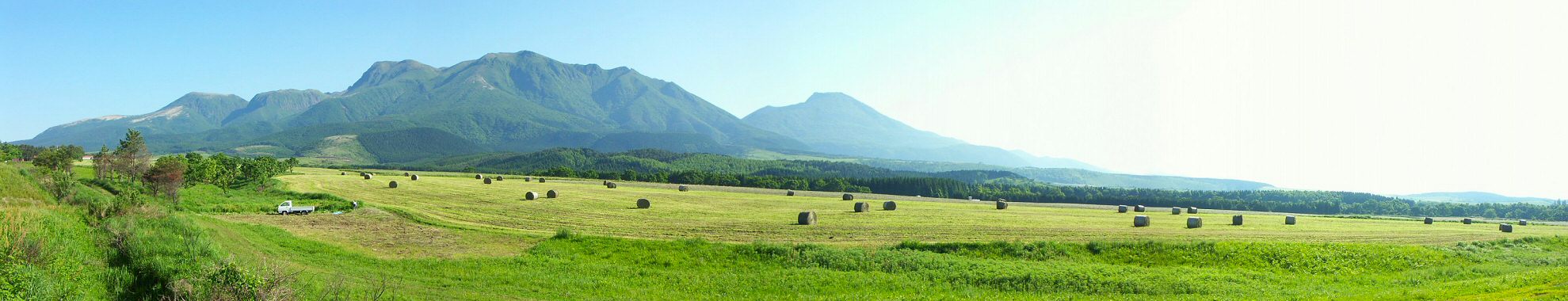 くじゅう高原と牧草ロール