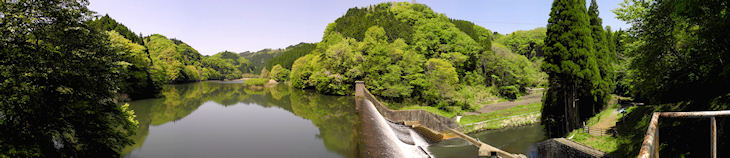 竹田市と緒方町を流れる富士緒井路の用水に使われる白水溜池・堰堤です。