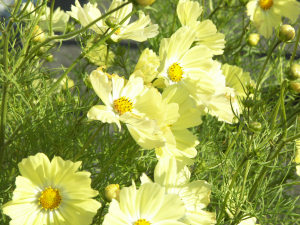 花びらが筒状のコスモス 花びらが黄緑色の珍しいコスモス