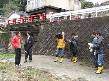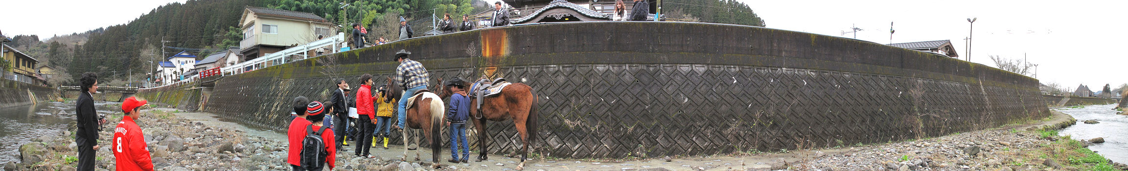 | この芹川のOBSテレビの取材班が | 馬に乗って川を歩く試乗会 | |
