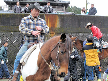 | 阿蘇の牧場から馬8頭をつれてきた専門インストラクター | 子ども達も楽しそう | |