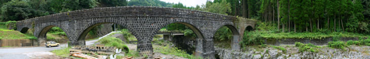 | 岩戸橋(竹田市荻)大分県で3番目に古い石橋 | 大分県は石橋の数が日本一です、宇佐市院内町や 豊後大野市緒方や清川の石橋の他 トンネルが多い竹田市(別名:レンコン町とも言われる)にも 立派な石橋が多くあります 阿蘇溶岩台地が侵食されてできた地形上渓谷が多く 必然的に洪水でも流されない石橋が求められたのでしょう。 明治・大正時代に架けられた石橋も多く現在でも使われており 先人の技術の高さに驚きます。 ここでは ●明正井路第一拱石橋 6連アーチの 灌漑用水路で長さ78mは石橋水路橋としては日本一。 ●山王橋 3連アーチの竹田市最古の石橋 ●若宮井路笹無田水路橋 2連の巨大な アーチの灌漑用水路 ●若宮井路鏡水路橋 2連のアーチの 灌漑用水路 ●住吉橋 2連アーチの石橋 などを紹介します。 |