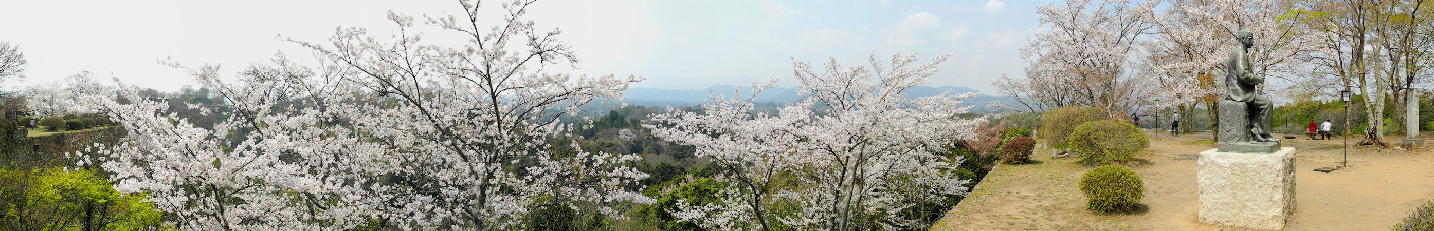 2012年4月9日 画面右端に荒城の月を作曲した滝廉太郎の銅像が建っています