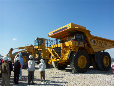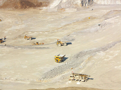 日本で一番広い石灰岩採掘現場です 100トンもある巨大なダンプが豆粒のよう
