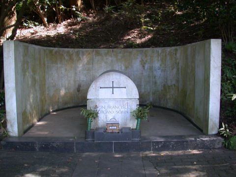 葬儀は神父たちにより盛大に行われ墓もキリスト教式に建てられましたが、秀吉が突然耶蘇教禁令を発布したため