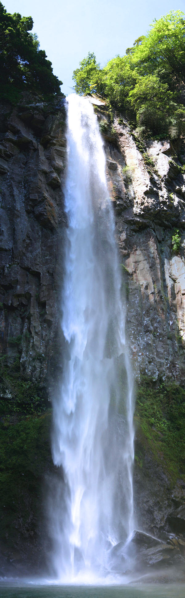 ”九州華厳”とも言われており日本の滝100選に選ばれている。 高さ85mの断崖を垂直に落ちる雄大な滝であり、昔から観音信仰の霊場となっていた場所です。 この写真は5枚の写真をつないで作りました