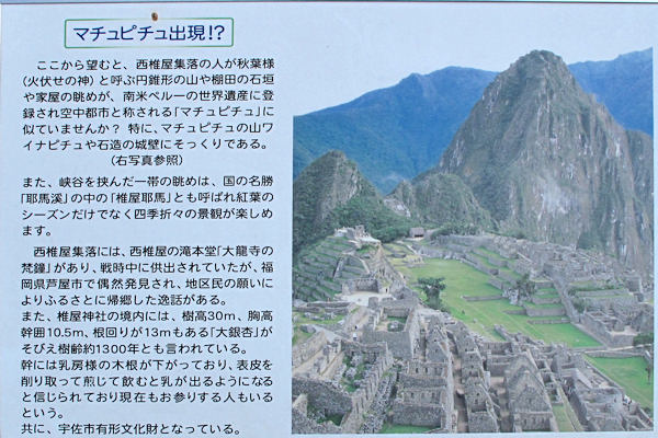2010年9月21日 このパノラマ写真の一番右端が出てくるまでお待ちください 誰が見つけて言い出したのか 南米ペルー インカ帝国の空中都市 「世界遺産のマチュピチに似ている」 看板までありました。 この画面内の道路建設当時2003年(7年前)の5月に写していた写真があります。←クリック