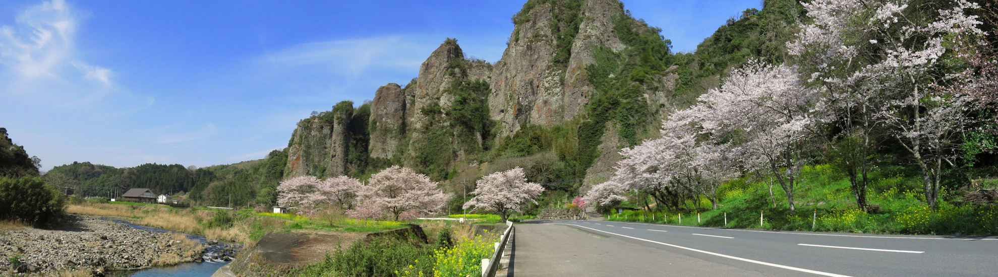 2013年4月1日 高さ100mの巨岩が垂直に立っている耶馬溪風景です