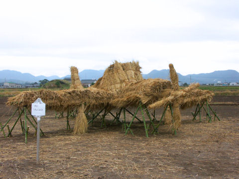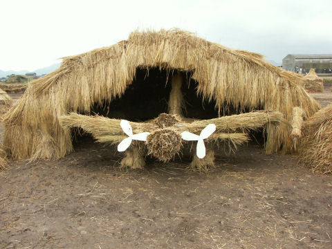 2006年11月20日 19日が藁こずみ大会でした 山形・愛媛・長崎・鹿児島・地元の城井子供会が参加し 宇佐航空隊跡地の掩体壕が周辺にある中でわらこずみ作品が作られました
