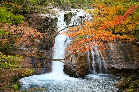男池を少し下ったところに美しい「名水の滝」があります 2005年11月1日撮影