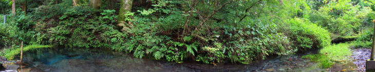 原生林に湧き出る男池の湧水は多くの人が水を汲みに訪れます