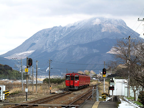 南由布駅から眺める由布岳
